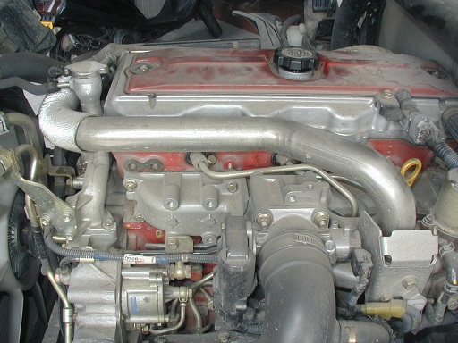 最近のトラックには再循環させる排気ガスの燃焼温度を下げる為に冷却水を使うEGRクーラーが装着され排気温度の下がった排気ガスを再度燃焼室に送りる様になっております。