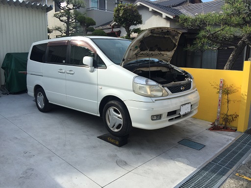 これはセルモーターの故障と判断し、とりあえず駐車場のど真ん中にセレナがとまってあるので、できれば端の方に駐車をしたいので応急的にセルモータを叩きエンジンを始動しました。