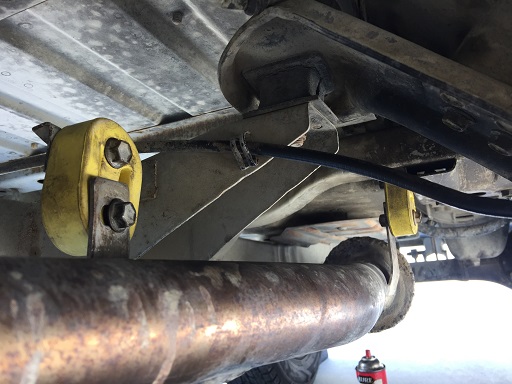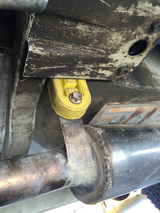 一番後ろのリヤのサイレンサー部分だけが通常の純正形状のマフラーマウントでは高さが足らないので高さを変更できる強化型のマフラーマウントをつけました。
