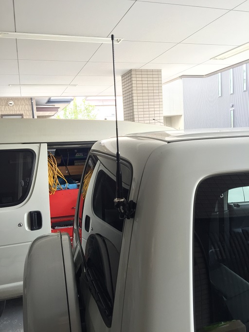 無線機本体は、助手席の足元、無線機コントロールパネルはダッシュボードの上で、無線機のスピーカーダッシュボードの中央。そして無線機アンテナはリヤゲートと取付位置がきまりました。