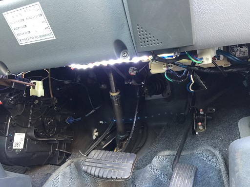 ■ 夜になると、運転席ドアを開閉することにより、足元を明るく照らすLED証明をつけております。